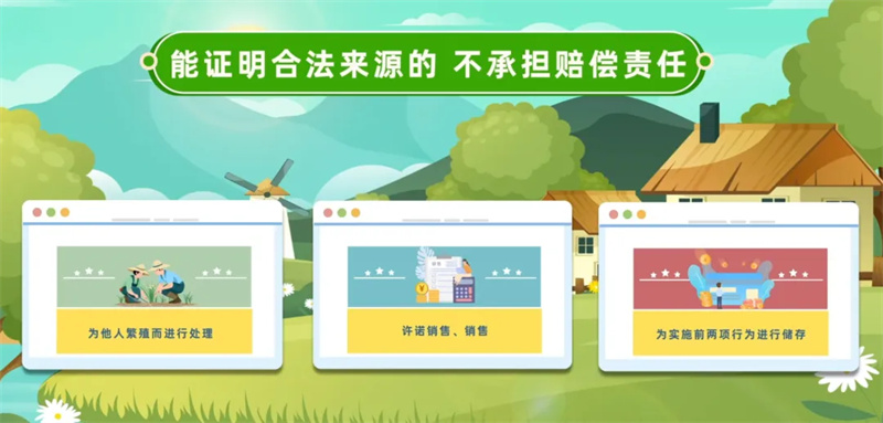 對不知道是侵權(quán)的繁殖材料、收獲材料實施下列行為,能證明合法來源的,不承擔賠償責任:一、為他人繁殖而進行處理;二、許諾銷售、銷售;三、為實施前兩項行為進行儲存。