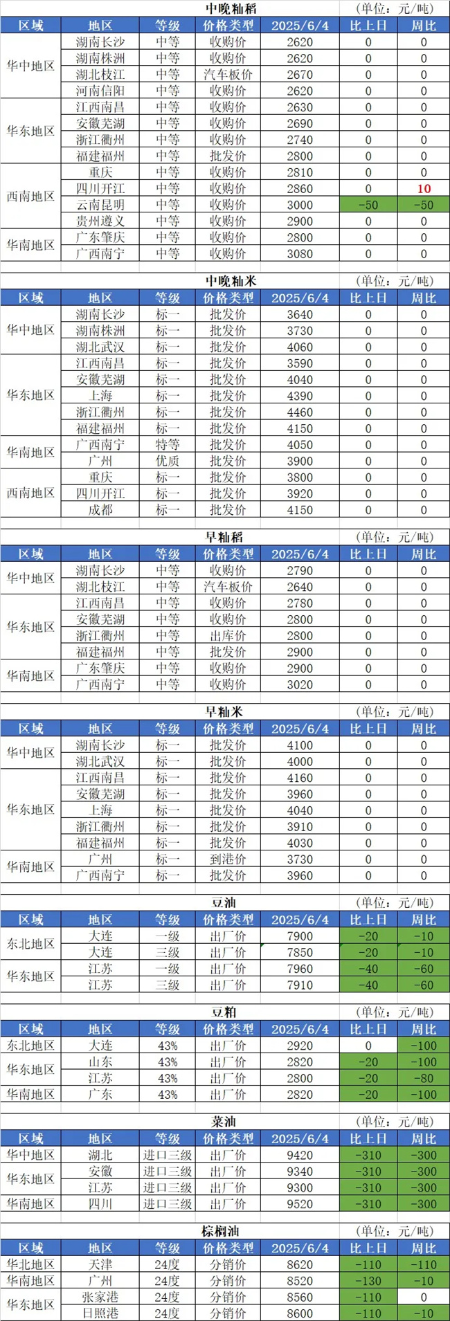 2、6月4日,山東部分玉米深加工企業(yè)調整玉米收購報價,其中濰坊盛泰收2394元/噸,較昨日下調10元/噸;成武大地收2434元/噸,較昨日漲10元/噸;英軒酒精收2414元/噸,較昨日下調6元/噸。