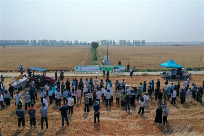 來自中國農(nóng)業(yè)科學(xué)院中原研究中心、成果轉(zhuǎn)化局,河南省科學(xué)技術(shù)廳現(xiàn)代農(nóng)業(yè)農(nóng)村科技處、河南省農(nóng)業(yè)技術(shù)推廣總站,漯河市農(nóng)業(yè)機械中心相關(guān)負責(zé)同志,多個縣(市、區(qū))農(nóng)技站(中心)相關(guān)負責(zé)同志、專家,種糧大戶代表共計110余人參加活動。同步進行的線上直播,累計觀看量達68萬余人次。