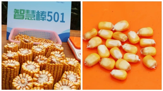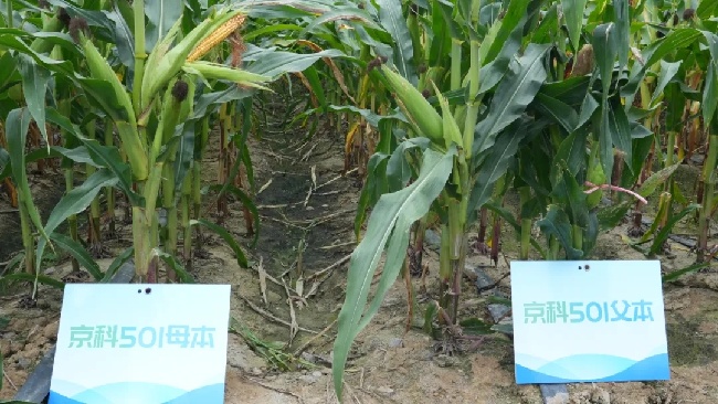 六、高淀粉、高容重,品質(zhì)優(yōu)、商品性好。經(jīng)農(nóng)業(yè)農(nóng)村部谷物品質(zhì)檢測中心檢測:京科501籽粒容重 760 克/升,粗淀粉含量 75.22%,粗蛋白含量 8.79%, 粗脂肪含量 4.4%,賴氨酸含量 0.27%。