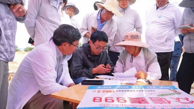 測產專家組由組長中國農科院趙廣才研究員及來自河北、山東兩省的省、市、縣的7名專家組成。專家組首先對小麥的田間長勢進行了全面、細致的實地查看,深入了解小麥在生長過程中的各項表現。隨后,在2200多畝的麥田中隨機選取面積11.44畝進行實收。經過一系列嚴謹的測產步驟,包括精確量地、稱重、水分、雜質扣除等,最終得出實收鮮籽重量為12862.85公斤。按照國家標準進行精確計算后,折合畝產達到了930.42公斤/畝,這一成績再次彰顯了眾信麥998的卓越豐產性。