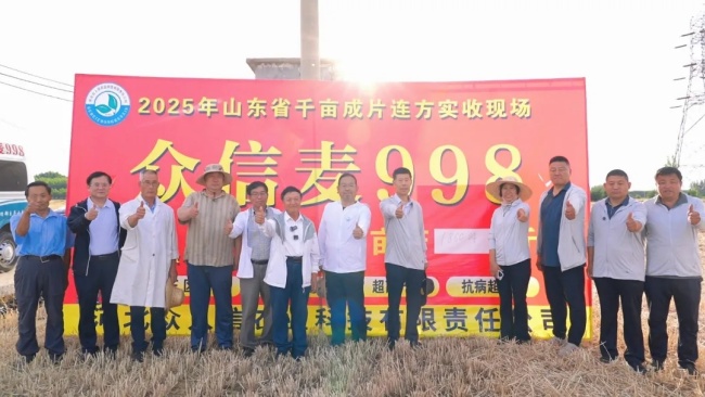 眾信麥998自審定推廣以來,憑借其矮桿大穗、綜合抗性強及適應性廣等特點,連續(xù)兩年刷新全國小麥單產紀錄,連續(xù)五年獲高產桂冠,贏得了農戶、專家以及行業(yè)的一致贊譽。此次測產活動的舉辦,不僅是對其優(yōu)良特性的再次檢驗,更是為眾信麥998在山東力爭超噸糧提供了一個極具價值的參考案例,進一步推動品種的優(yōu)化與升級。