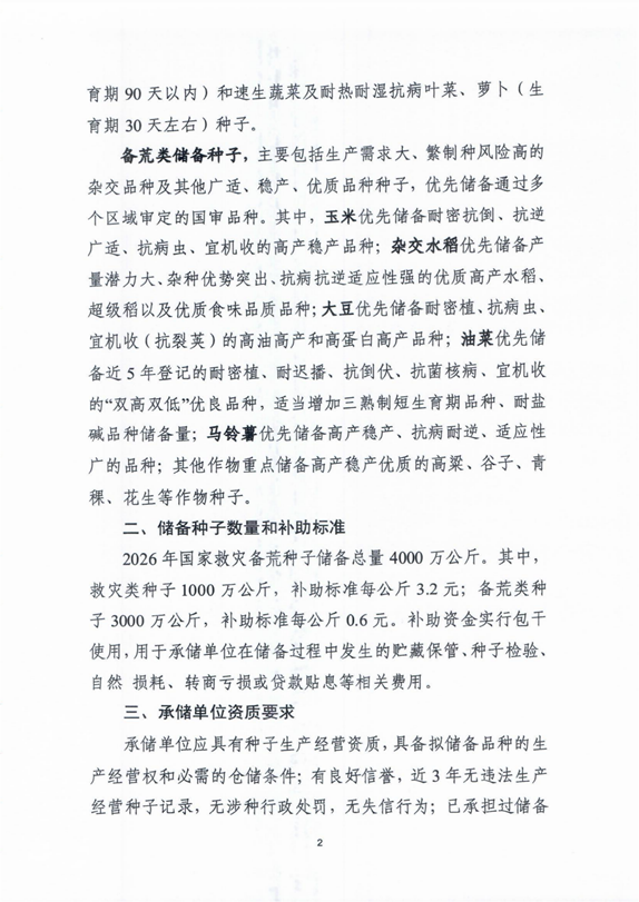關(guān)于組織申報2026年國家救災(zāi)備荒種子儲備任務(wù)的通知》的通知
