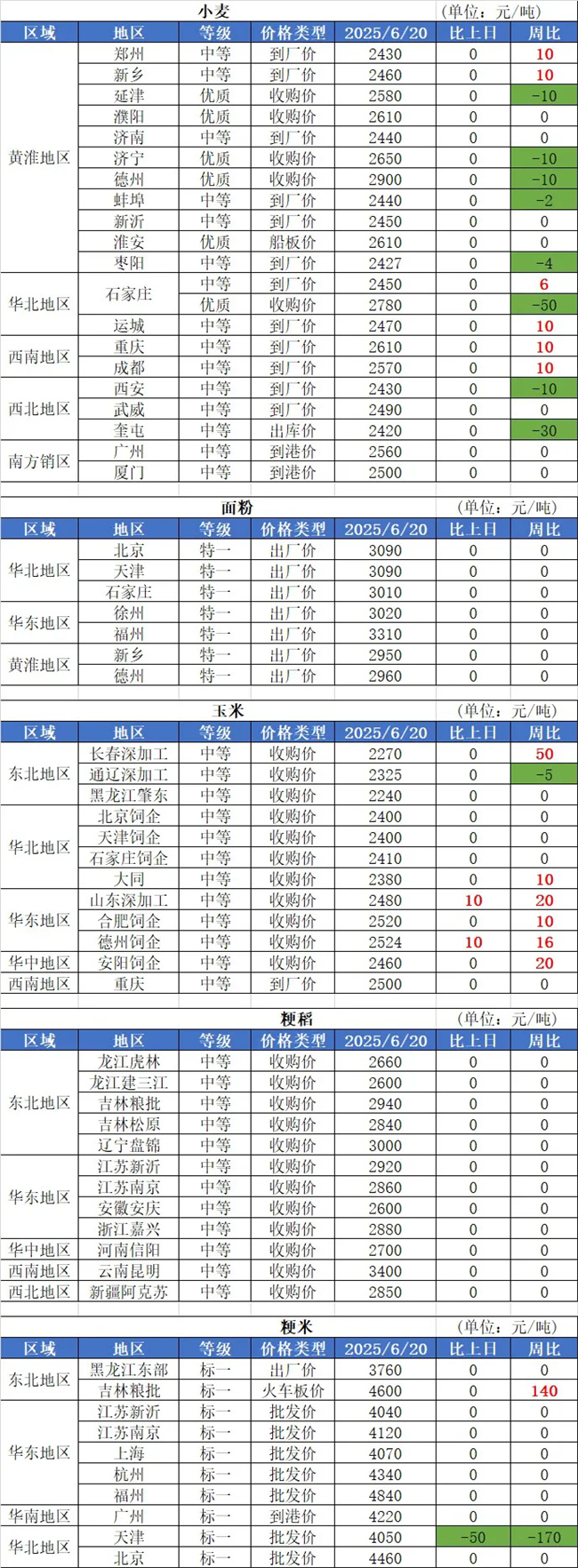 1、截至6月18日,小麥收獲進(jìn)度已達(dá)96%,供應(yīng)壓力繼續(xù)增加,而需求疲弱,制粉企業(yè)開工率低位,原料消耗能力有限,市場(chǎng)階段性供強(qiáng)需弱矛盾突出,故而在政策性收購(gòu)尚未大范圍啟動(dòng)前,麥價(jià)上行受限。