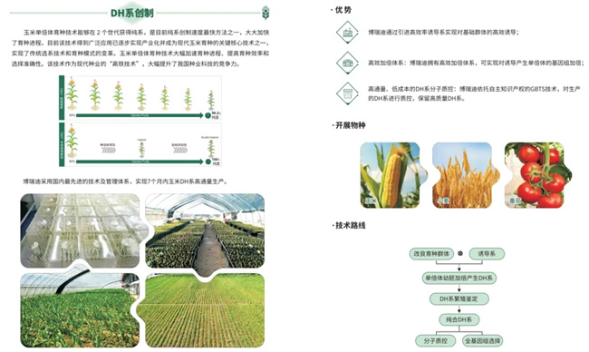 在DH系(雙單倍體系)創(chuàng)制方面,博瑞迪同樣成績斐然。與中國農(nóng)大陳紹江團隊全面合作,構(gòu)建的先進技術(shù)體系,實現(xiàn)了從誘導(dǎo)、鑒別到加倍的全流程優(yōu)化升級。博瑞迪不但可以完成玉米DH系的高通量生產(chǎn),且誘導(dǎo)率與加倍率均位于行業(yè)前列,同時,小麥、番茄及十字花科作物也實現(xiàn)了快速培育純合自交系,為加速育種進程開辟了新路徑。