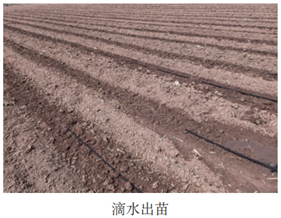 播種時墑情不足,即0~20厘米土壤相對含水量低于50%時,在播后2~3天,滴灌補(bǔ)一次出苗水(此次滴灌不加任何肥料),畝灌水量20米³左右,以保證順利出苗。
