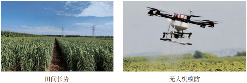 在谷子拔節(jié)、孕穗、灌漿等關(guān)鍵生育時期,根據(jù)谷子生長情況,通過無人機(jī)適量噴施葉面肥、作物生長調(diào)節(jié)劑等,促進(jìn)谷子生長。