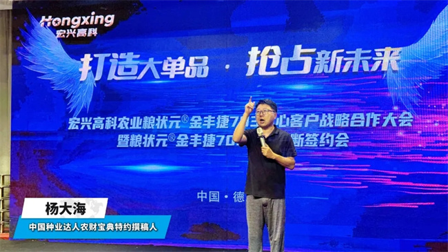 宏興高科農(nóng)業(yè)徐健總經(jīng)理就公司發(fā)展歷程、戰(zhàn)略規(guī)劃及糧狀元®金豐捷703推廣布局規(guī)劃進行了詳細介紹。并總結(jié)糧狀元®金豐捷703的七大優(yōu)勢: