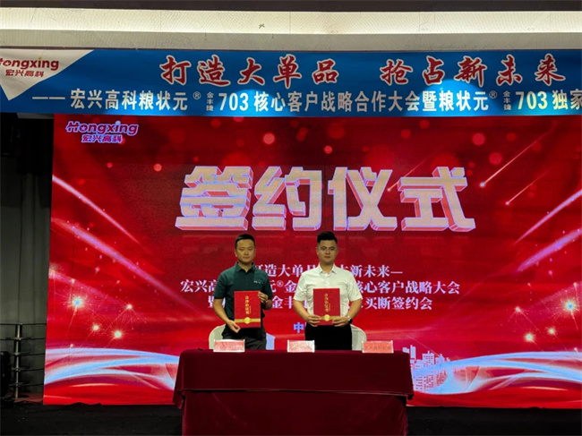 ▲宏興高科農(nóng)業(yè)以2200萬元獨家買斷糧狀元®金豐捷703簽約現(xiàn)場