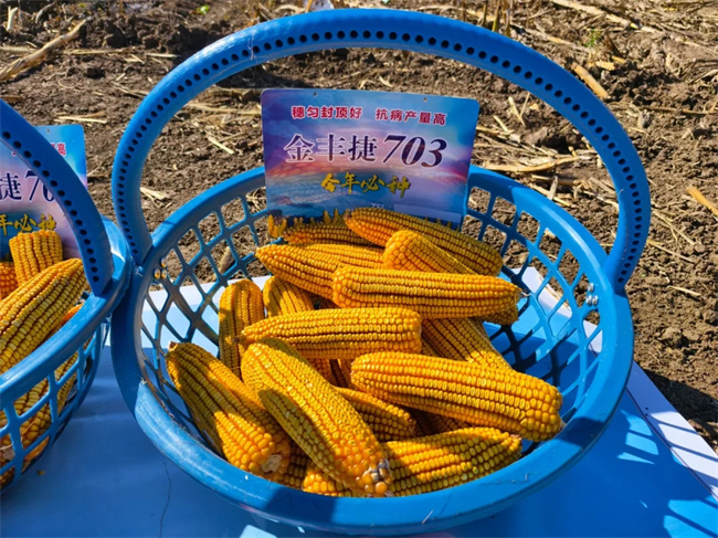 2024年,玉米穗腐病嚴重影響農(nóng)民賣糧收益。糧狀元®金豐捷703憑借其抗穗腐特性,籽粒為純角質(zhì)糧,賣價達到一等糧價格,以產(chǎn)量和品質(zhì)的雙重優(yōu)勢,切實保障農(nóng)民種糧收益。該品種在東華北中熟區(qū)受到種糧大戶廣泛認可,品種熱度持續(xù)攀升,“糧狀元”口碑日益響亮。