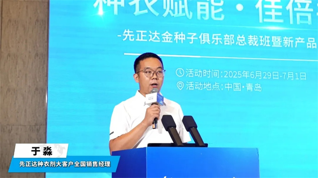 近年來,我國農(nóng)業(yè)面臨著諸多挑戰(zhàn),氣候多變、病蟲害多發(fā),嚴(yán)重影響了玉米等主要農(nóng)作物的產(chǎn)量和質(zhì)量。如何保障種子健康,提高成苗率和抗逆能力,為農(nóng)作物豐產(chǎn)豐收打下堅實(shí)基礎(chǔ),成為種業(yè)企業(yè)亟待解決的關(guān)鍵問題。在此背景下,先正達(dá)金種子俱樂部總裁班暨新產(chǎn)品發(fā)布會的召開,無疑為行業(yè)提供了一個交流、學(xué)習(xí)和合作的極佳平臺。先正達(dá)種衣劑大客戶全國銷售經(jīng)理于淼主持會議。