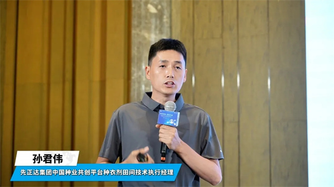 先正達(dá)集團(tuán)中國種業(yè)共創(chuàng)平臺種衣劑田間技術(shù)執(zhí)行經(jīng)理孫君偉在《先正達(dá)種衣劑為生物育種保駕護(hù)航》的演講中,全面闡述先正達(dá)系列產(chǎn)品為種子茁壯成長保駕護(hù)航。除了防蟲抗病,更能促進(jìn)作物生長,增強(qiáng)作物抗逆能力,提高作物產(chǎn)量,全面激發(fā)作物增產(chǎn)潛能。他通過豐富的案例和數(shù)據(jù),展示了先正達(dá)種衣劑在實(shí)際應(yīng)用中的顯著效果,贏得了與會者的高度認(rèn)可。
