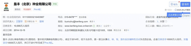 公開信息顯示,墾豐科沃施種業(yè)有限公司現(xiàn)已更名為墾豐(北京)種業(yè)有限公司,由北大荒墾豐種業(yè)持股51%,另外49%由私募基金中國農(nóng)墾產(chǎn)業(yè)發(fā)展基金(有限合伙)持有。