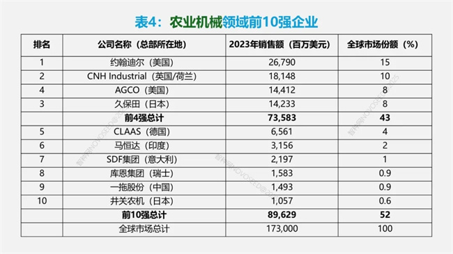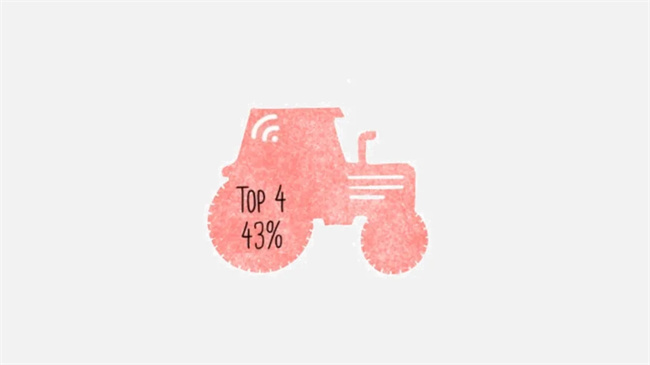 在農(nóng)業(yè)機械領(lǐng)域,約翰迪爾(John Deere)、CNH Industrial、AGCO和久保田(Kubota)四家公司控制了全球市場的 43%。