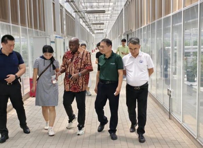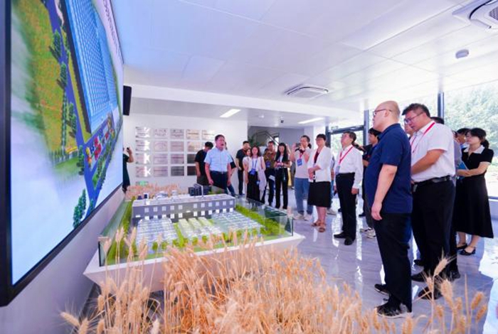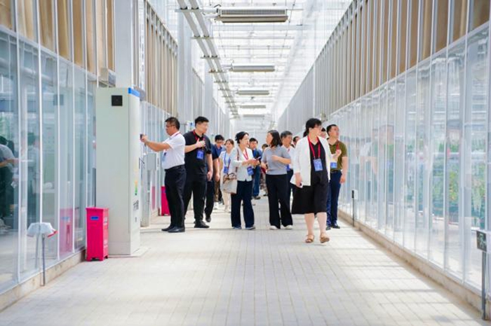圖為產(chǎn)學(xué)研代表在通州國際種業(yè)科技園區(qū)育種平臺(tái)參觀