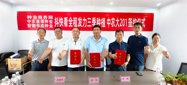 7月8日,“抖快看”全程發(fā)力“中農(nóng)大201”玉米大品種流量增長簽約儀式在種業(yè)商務(wù)網(wǎng)直播基地隆重舉行。種業(yè)商務(wù)網(wǎng)主任董偉、山西中農(nóng)賽博種業(yè)股份有限公司副總經(jīng)理徐建平及安徽華成種業(yè)股份有限公司常務(wù)副總經(jīng)理郭然齊聚一堂,共同見證了這一重要時刻。