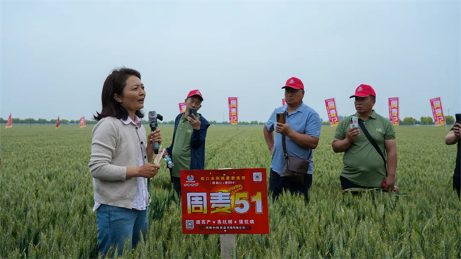 河南中格農(nóng)業(yè)科技有限公司營銷總監(jiān)袁明宏對(duì)“周麥51號(hào)”推廣應(yīng)用充滿信心。他認(rèn)為,該品種集成了前沿的育種科技,其矮稈抗倒、高產(chǎn)穩(wěn)產(chǎn)、多抗廣適的特性,精準(zhǔn)解決了當(dāng)前小麥生產(chǎn)中的諸多痛點(diǎn)難點(diǎn)。公司將以品種綜合優(yōu)勢為依托,精準(zhǔn)定位市場需求,以“優(yōu)良品種+優(yōu)質(zhì)服務(wù)”為引擎,加大“周麥51號(hào)”的推廣應(yīng)用力度,助力小麥產(chǎn)業(yè)高質(zhì)量發(fā)展,為保障國家糧食安全貢獻(xiàn)一份力量。