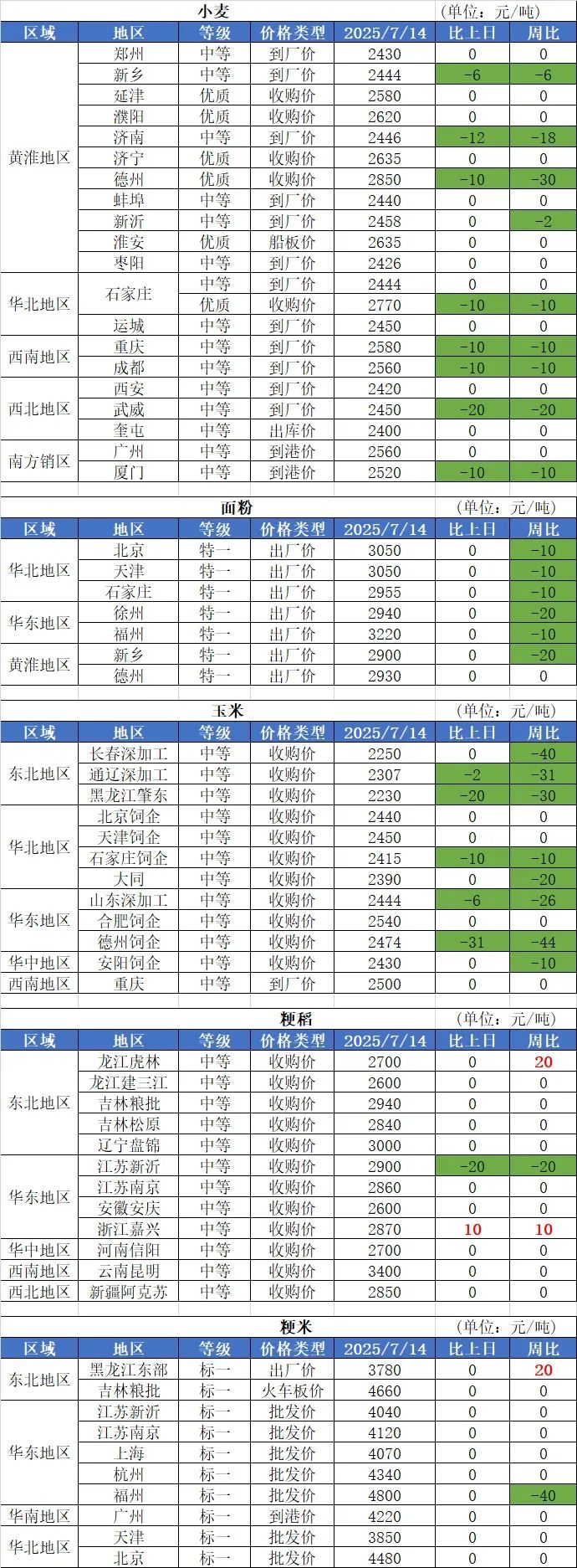 1、7月13日國(guó)內(nèi)小麥市場(chǎng)價(jià)格整體偏弱運(yùn)行,一方面,最低收購(gòu)價(jià)啟動(dòng)與中儲(chǔ)糧輪換形成雙軌支撐,小麥的季節(jié)性賣(mài)壓有所緩解,但不容忽視的是,進(jìn)入三季度,學(xué)校放假、餐飲需求減少,制粉企業(yè)維持低開(kāi)機(jī)率,這些因素都將制約小麥價(jià)格上漲。
