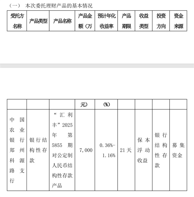 據(jù)公告,公司本次以部分閑置募集資金購(gòu)買(mǎi)銀行產(chǎn)品的金額合計(jì)7000萬(wàn)元。本次現(xiàn)金管理后,公司閑置募集資金現(xiàn)金管理的未到期產(chǎn)品余額為人民幣10,000萬(wàn)元,占公司2024年度經(jīng)審計(jì)凈資產(chǎn)的17.83%。
