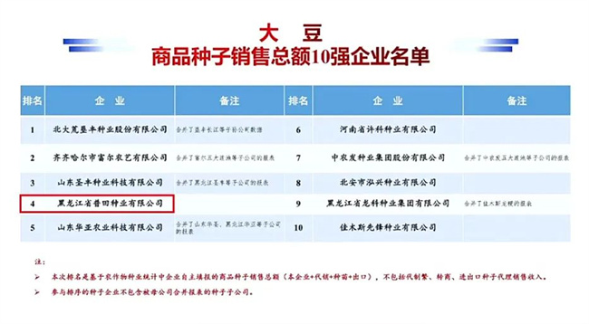 2024年的第二十一屆全國(guó)種子信息交流會(huì)上公布了最新的種業(yè)企業(yè)排名,普田種業(yè)再度入選,連續(xù)6年進(jìn)入常規(guī)水稻商品種子銷(xiāo)售總額前10,大豆商品種子銷(xiāo)售總額步入前5。
