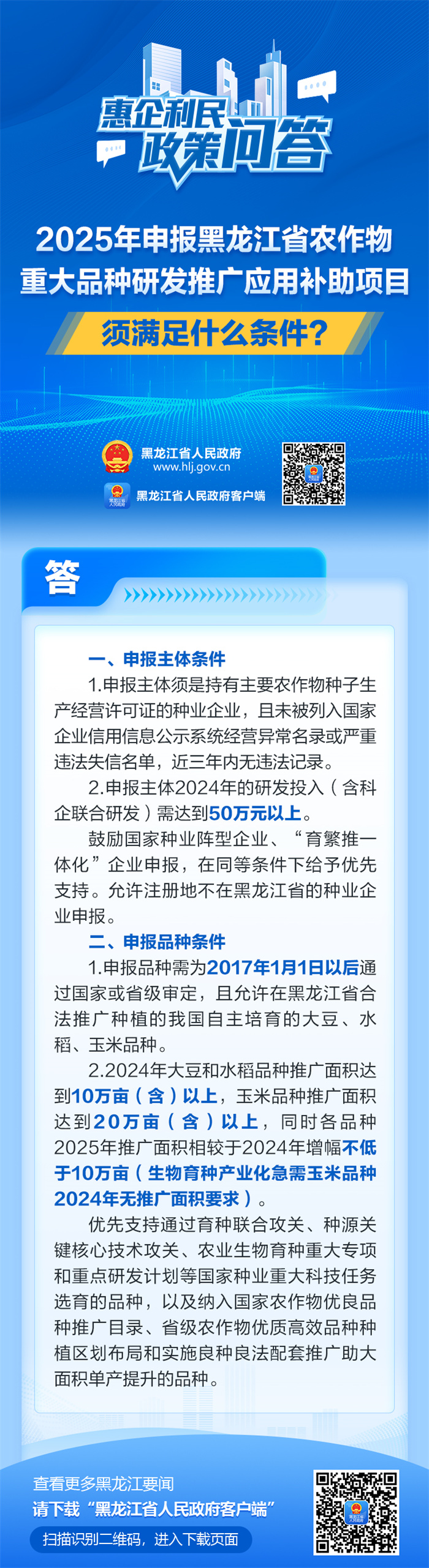 2025年申報黑龍江省農(nóng)作物重大品種研發(fā)推廣應(yīng)用補(bǔ)助項目須滿足什么條件?