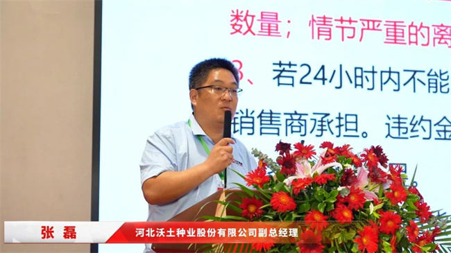 沃土種業(yè)副總經(jīng)理張磊在大會上解讀了市場管理措施及賦能扶持政策,為經(jīng)銷商提供了明確的市場指導(dǎo)和有力的支持保障。