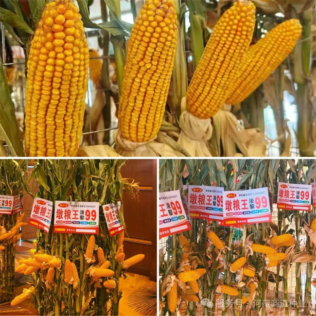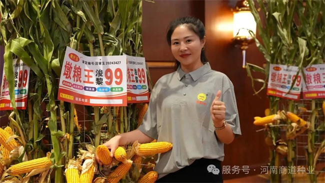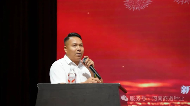 孫彥凱總經(jīng)理再次登臺,向與會伙伴深入介紹了河南商道種業(yè)的發(fā)展戰(zhàn)略、核心優(yōu)勢以及未來的宏偉規(guī)劃。他重點聚焦“浚黎99”這一明星品種,浚黎99玉米導(dǎo)入熱帶種質(zhì)資源,顯著提升了耐高溫能力和抗銹病能力。通過溫?zé)犭s交策略,該品種有效應(yīng)對黃淮海地區(qū)的高溫?zé)岷εc病害威脅,為區(qū)域玉米穩(wěn)產(chǎn)高產(chǎn)提供保障。他還從浚黎99品種特性、高產(chǎn)潛力、區(qū)域適應(yīng)性到未來的研發(fā)迭代方向和市場布局策略,進行了全方位、深層次的解讀,再次強化了合作伙伴對“浚黎99”市場前景的堅定信心。