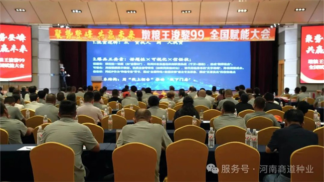 近日,鶴壁迎賓館高朋滿座,氣氛熱烈,“聚勢登峰,共贏未來——浚黎99全國賦能大會”在此盛大啟幕。來自全國各地的優(yōu)秀合作伙伴齊聚一堂,共同見證河南商道種業(yè)的發(fā)展新篇,深度聚焦浚黎99玉米種子的廣闊前景與賦能方案。