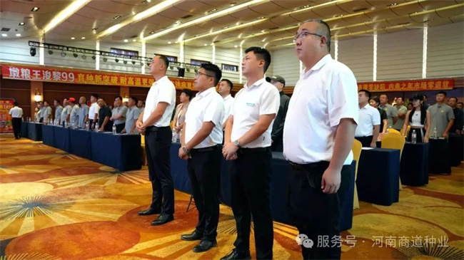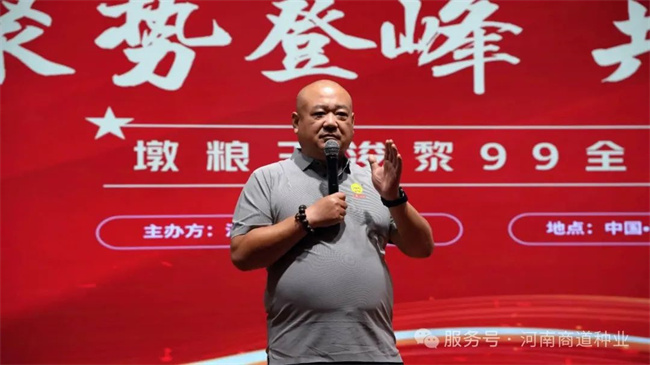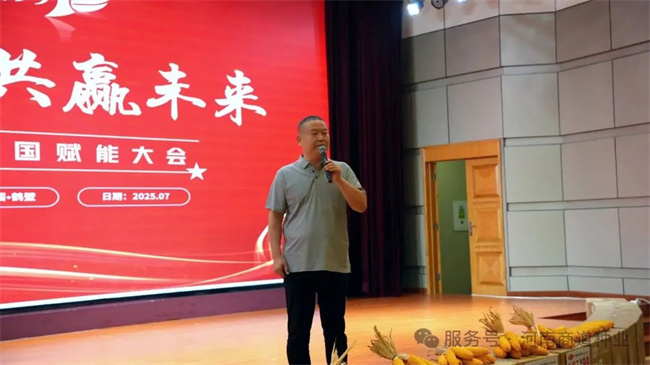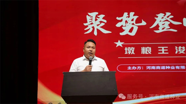 大會在莊嚴(yán)的國歌聲中拉開序幕,全體與會人員肅立致敬。隨后,主持人帶領(lǐng)大家重溫河南商道種業(yè)的企業(yè)文化核心,堅定“誠信、創(chuàng)新、共贏”的發(fā)展理念。河南商道種業(yè)海創(chuàng)事業(yè)部總經(jīng)理孫彥凱作重要開場致辭,他深情回顧了過去一年公司與廣大經(jīng)銷商攜手并進取得的扎實成果,深刻分析了當(dāng)前種業(yè)市場機遇與挑戰(zhàn),并清晰擘畫了以“浚黎99”為核心驅(qū)動的未來發(fā)展藍(lán)圖,傳遞出商道種業(yè)持續(xù)深耕市場、服務(wù)三農(nóng)的堅定信心。