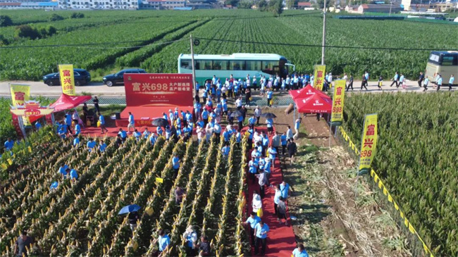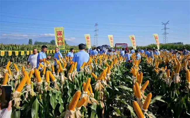 富興698觀摩田內(nèi),其卓越的大田表現(xiàn)充分彰顯了品種的抗逆優(yōu)勢及強大的適應(yīng)性。尤其在本年度持續(xù)的高溫干旱條件下,眾多品種出現(xiàn)了結(jié)實不良,甚至空棵現(xiàn)象,而富興698的田間表現(xiàn)尤為出色:穗位整齊、結(jié)實率高、封頂優(yōu)良,果穗均勻且籽粒飽滿,色澤金黃,抗逆能力顯著,呈現(xiàn)出一派豐收景象。這一表現(xiàn)贏得了觀摩嘉賓的一致好評與高度稱贊。他們紛紛表示,富興698在復雜環(huán)境下的穩(wěn)定性和豐產(chǎn)性,不僅為種植戶帶來了實實在在的收益保障,更為其大力推廣增添了強大底氣。
