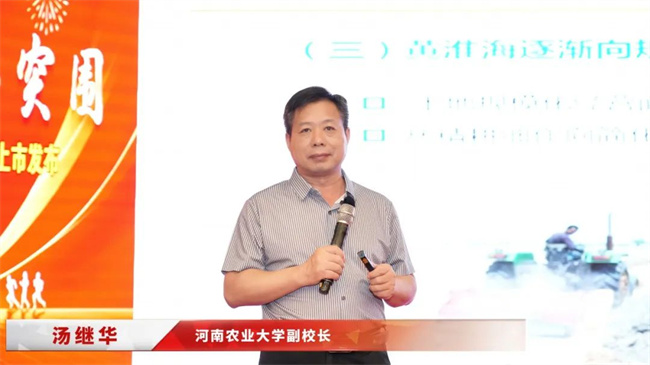 河南農(nóng)業(yè)大學(xué)副校長湯繼華教授在《黃淮海玉米育種方向》報告中,結(jié)合黃淮海地區(qū)農(nóng)業(yè)特點和玉米種植現(xiàn)狀,提出抗逆耐密育種方向,明確育種目標為高產(chǎn)、宜機收、早熟、耐密、抗倒伏/倒折、耐高溫及抗主要病蟲害。湯教授強調(diào),基于前期聯(lián)合技豐種業(yè)集團選育的YD8010、YD8012、YD8235、YD8019等品種,河南農(nóng)業(yè)大學(xué)與技豐種業(yè)將進一步深化聯(lián)合育種攻關(guān),助力技豐種業(yè)集團快速發(fā)展。
