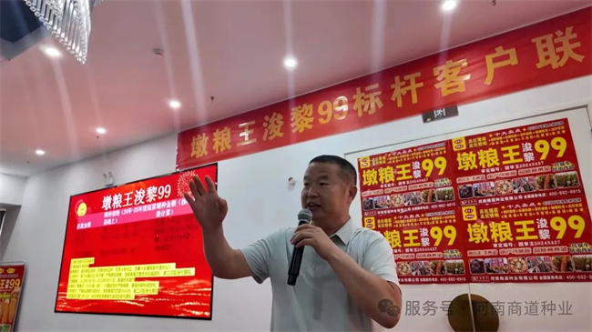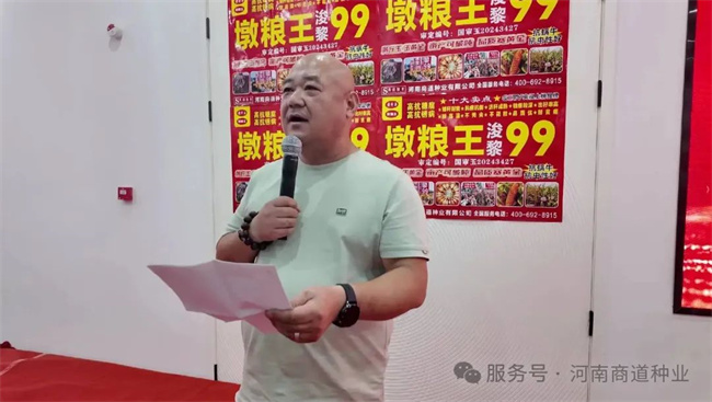 商道種業(yè)海創(chuàng)事業(yè)部營(yíng)銷總經(jīng)理孫彥凱常年扎根田間地頭,深入了解市場(chǎng)與農(nóng)戶需求。他上臺(tái)系統(tǒng)解讀了浚黎 99 的品種特征與核心優(yōu)勢(shì)。孫總的權(quán)威解讀讓大家清晰知曉,浚黎 99 抗病性強(qiáng)、高產(chǎn)穩(wěn)產(chǎn)、適應(yīng)廣,每一項(xiàng)特性都直擊種植戶痛點(diǎn),這也正是推廣該品種的底氣所在。