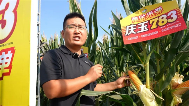 作為扶溝縣、西華縣、太康縣總代理,天佑種業(yè)張總表示,慶玉783在2023年臺(tái)風(fēng)引發(fā)的嚴(yán)重銹病中表現(xiàn)出色,2024年穗腐病高發(fā)時(shí),其黃金品質(zhì)尤為突出。該品種株型優(yōu)良,雄穗分枝多,授粉期長(zhǎng),結(jié)實(shí)性好,無(wú)論高密度還是低密度種植均表現(xiàn)優(yōu)異。張總表示,將繼續(xù)加大宣傳推廣力度,對(duì)其市場(chǎng)前景充滿信心;封丘縣代理商王總分享稱,慶玉783從試種到大田生產(chǎn),始終表現(xiàn)良好,活稈成熟,葉片青綠,籽粒金黃發(fā)亮。2025年春播,7000株/畝密度下,結(jié)實(shí)性好,穗大穗勻,豐收在望。夏播長(zhǎng)勢(shì)同樣良好。并表示對(duì)其成為大單品充滿期待。