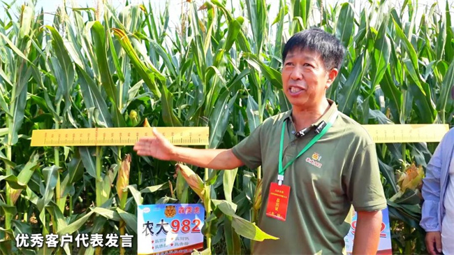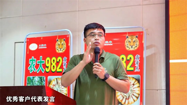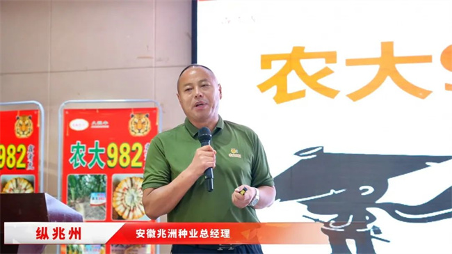 安徽兆州農業(yè)科技有限公司總經(jīng)理縱兆洲分享了農大982品種的綜合表現(xiàn)。他指出,農大982在大旱之年的隨機地塊中仍獲得高度認可,充分展現(xiàn)了其綜合抗性強、品種基因優(yōu)良等特點,且符合耐密型品種的發(fā)展趨勢。在當前種業(yè)市場競爭激烈、眾多品種難以持久的背景下,選擇農大982并結合線上線下宣傳及獨特的營銷服務,定能為公司帶來可觀的財富與廣闊的發(fā)展空間。縱總呼吁各位伙伴積極行動起來,把握這一難得的機遇,共同迎接未來的挑戰(zhàn)。