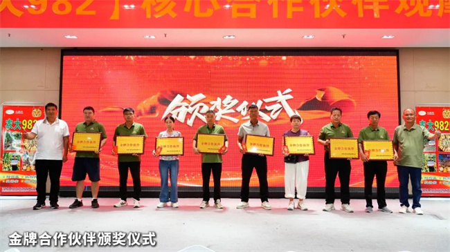 會議期間,公司對睢縣騰飛農資有限公司葛冠軍等年度金牌合作伙伴進行了表彰,以激勵更多合作伙伴積極參與農大982的推廣工作。