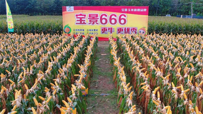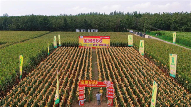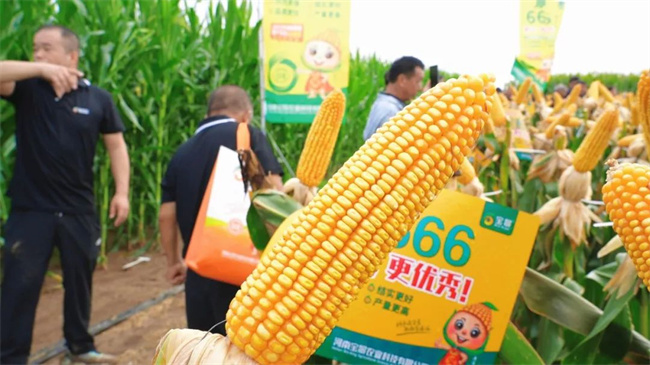 會議期間,與會人員實地觀摩了耐密、高產(chǎn)、多抗的國審玉米品種寶景666。該品種憑借其卓越的特性,在黃淮海地區(qū)的大面積生產(chǎn)中展現(xiàn)出良好的適應性和穩(wěn)定性,贏得了種植戶的高度贊譽。寶景666具有諸多優(yōu)良特性:株高穗位協(xié)調(diào),三層霸王根抓地牢,莖稈韌性好,抗倒能力強;棒子大,穗子均勻,行數(shù)多(18—22行),出籽率高,耐密性好,一般地塊種植密度可達5000株/畝,高水肥地塊可達5500株/畝;抗高溫耐陰雨寡照,結(jié)實好,一粒封頂,高產(chǎn)穩(wěn)產(chǎn);綜合抗性一流,大田表現(xiàn)抗青枯、穗腐和南方銹病非常出色。經(jīng)銷商和種植大戶在田間分享時均認為,寶景666玉米品種的優(yōu)良特性在近兩年的種植實踐中得到了充分驗證。他們一致表示,該品種適應性好,高產(chǎn)穩(wěn)產(chǎn),尤其在當下氣候復雜變化的背景下,是非常值得推廣和種植的靠譜品種。