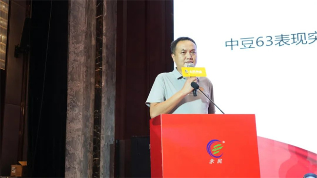 永民種業(yè)董事長(zhǎng)趙雷在介紹中豆63時(shí)強(qiáng)調(diào),稱其為跨時(shí)代品種毫不為過。2021年,永民種業(yè)以1500萬拿下全國(guó)運(yùn)營(yíng)權(quán),打破大豆轉(zhuǎn)讓紀(jì)錄,憑借其高產(chǎn)優(yōu)勢(shì),中豆63在多省獲推廣,并多次獲得央視報(bào)道,為大豆產(chǎn)業(yè)高質(zhì)量發(fā)展做出了積極貢獻(xiàn),為種植戶帶來了顯著的收益。趙總表示,未來,公司將繼續(xù)以“和諧共發(fā)展,客戶零風(fēng)險(xiǎn)”為目標(biāo),聚力同心,協(xié)同發(fā)展。