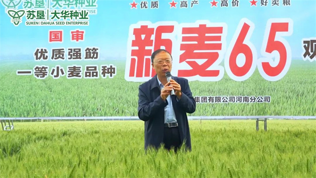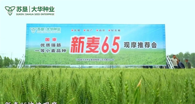 新麥65:新鄉(xiāng)市農(nóng)科院育種團(tuán)隊(duì)保留新麥26品質(zhì),完善了抗倒性和豐產(chǎn)性,真正實(shí)現(xiàn)了既優(yōu)質(zhì)又豐產(chǎn)的育種目標(biāo)而選育的突破性品種,審定編號(hào)為國(guó)審麥20251038。該品種為半冬性,全生育期225.6天,與對(duì)照品種周麥36號(hào)熟期相當(dāng)。幼苗匍匐,葉片細(xì)長(zhǎng),葉色深綠,分蘗力強(qiáng)。株高78.2厘米,株型緊湊,抗倒性好,整齊度較好。其平均畝穗數(shù)44.1萬(wàn)穗,穗粒數(shù)35.3粒,千粒重39.9克。在2021—2022年度黃淮冬麥區(qū)南片水地組區(qū)域試驗(yàn)中,品質(zhì)指標(biāo)達(dá)到強(qiáng)筋小麥標(biāo)準(zhǔn),表現(xiàn)出高產(chǎn)穩(wěn)產(chǎn)的特性。2021—2022年度區(qū)域試驗(yàn)平均畝產(chǎn)632.5千克,2022—2023年度續(xù)試平均畝產(chǎn)539.2千克,2023—2024年度生產(chǎn)試驗(yàn)平均畝產(chǎn)589.0千克。新麥65以其優(yōu)良的品質(zhì)和穩(wěn)定的產(chǎn)量表現(xiàn),成為黃淮冬麥區(qū)南片水地種植的優(yōu)選品種之一。