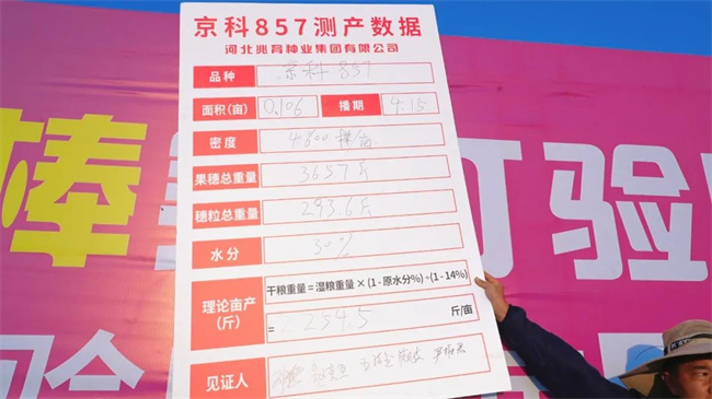 8月11日下午,山東省農(nóng)業(yè)農(nóng)村廳、濟南市農(nóng)業(yè)農(nóng)村局、滄州市農(nóng)業(yè)農(nóng)村局及肥城市農(nóng)業(yè)農(nóng)村局組成的實收測產(chǎn)專家組,對肥城市安駕莊鎮(zhèn)中江莊村種植的京科857(4600株/畝密度)進行實收測產(chǎn)。按照農(nóng)業(yè)農(nóng)村部玉米測產(chǎn)規(guī)范,折合14%水分后,干糧產(chǎn)量達1127.25公斤/畝。測產(chǎn)現(xiàn)場,京科857穗大、結(jié)實好、果穗均勻,贏得嘉賓高度贊譽。經(jīng)銷商代表分享時指出,該品種株型緊湊,株高穗位比例協(xié)調(diào),田間通透性好,光合作用強;抗高溫、耐陰雨寡照,結(jié)實性好,穗大穗勻,尤其在2025年復雜氣候下,高產(chǎn)優(yōu)勢凸顯。前期示范種植顯示,其抗青枯、穗腐病,大田種植抗銹和葉斑病能力強,軸細粒深,色澤光亮,寬板糧,品質(zhì)一流。