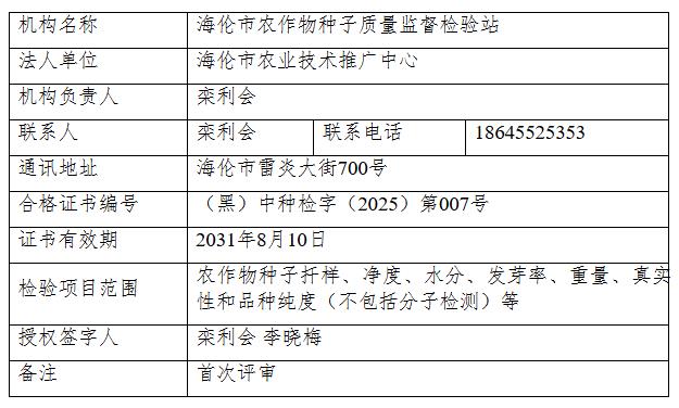 2.海倫市農(nóng)作物種子質(zhì)量監(jiān)督檢驗(yàn)站
