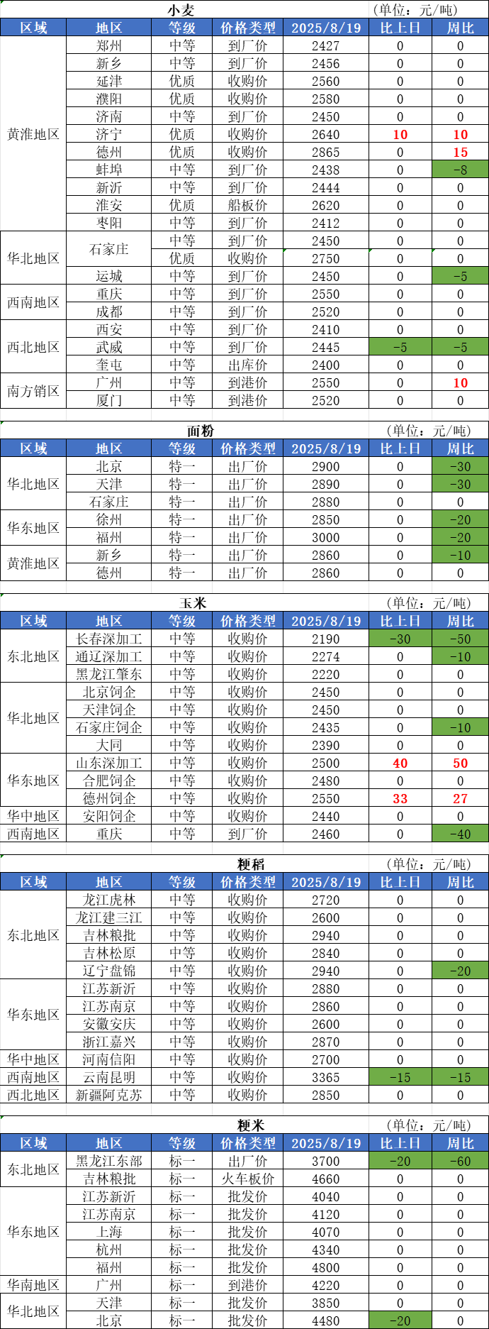 1、8月19日,制粉企業(yè)小麥收購(gòu)價(jià)窄幅震蕩。當(dāng)下小麥?zhǔn)袌?chǎng)最大的利好因素在于小麥托市政策對(duì)底部?jī)r(jià)格形成的支撐,制粉企業(yè)目前主要以滿足剛性需求進(jìn)行采購(gòu),主動(dòng)提價(jià)收購(gòu)意愿不強(qiáng)。