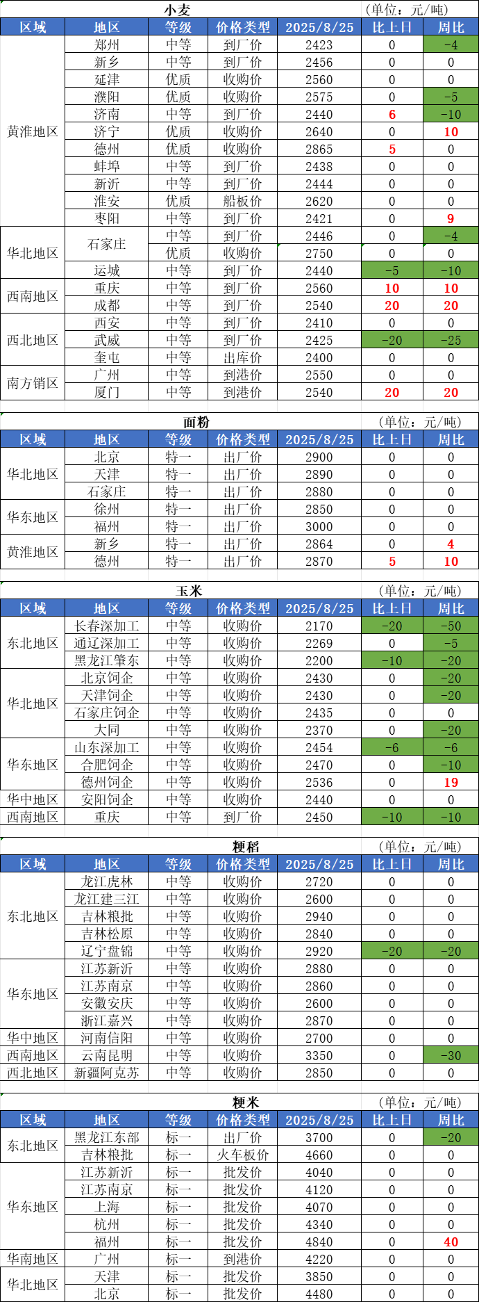 1、8月25日,小麥加工企業(yè)收購價格保持平穩(wěn),僅河北零星面企下調(diào)收購價格。面粉加工企業(yè)保持著低庫存運營策略,壓價意愿較強。監(jiān)測數(shù)據(jù)顯示,截至8月22日當周,中小型粉企開機率約為34%,比上周略有下降。