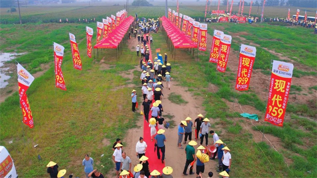 在夏邑縣的活動現(xiàn)場,來自豫魯蘇皖四省的2000余名農(nóng)戶冒雨前來,現(xiàn)場人氣高漲,訂購踴躍,當天累計訂購面積超過4萬余畝,充分體現(xiàn)了農(nóng)戶對接力棒現(xiàn)代959的高度認可。