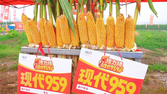 “良種播下希望,豐收照亮未來。”隨著國家對糧食安全與農(nóng)業(yè)現(xiàn)代化的不斷重視,優(yōu)質(zhì)農(nóng)作物品種的推廣應用已成為提升作物產(chǎn)量和效益的關鍵環(huán)節(jié)。接力棒現(xiàn)代959作為近年來在黃淮海區(qū)域表現(xiàn)突出的優(yōu)質(zhì)玉米品種,憑借其“三抗一高一穩(wěn)”——抗病、抗逆又抗倒,產(chǎn)量高,穩(wěn)產(chǎn)不掉鏈的突出優(yōu)勢,特別是在2023年河南省農(nóng)業(yè)農(nóng)村廳組織的實打驗收中,畝產(chǎn)達到2342.8斤,充分展現(xiàn)了其高產(chǎn)潛力,受到了廣大農(nóng)戶的高度認可,也成為農(nóng)民關注的焦點。此次在夏邑縣舉辦訂購會,不僅為農(nóng)戶提供了實地觀摩、深入了解品種的機會,也為推動區(qū)域農(nóng)業(yè)高質(zhì)量發(fā)展注入了新動力。