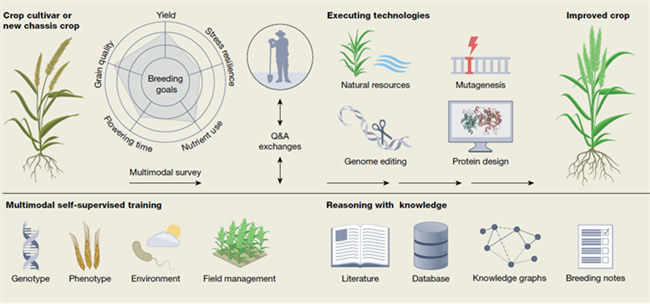 近日,由中國科學(xué)院遺傳與發(fā)育生物學(xué)研究所高彩霞研究員、華中農(nóng)業(yè)大學(xué)李國田教授領(lǐng)銜的中外團(tuán)隊,聯(lián)合撰寫的綜述文章Integrated biotechnological and AI innovations for crop improvement在Nature雜志發(fā)表。該文章總結(jié)了多組學(xué)、基因組編輯、蛋白質(zhì)設(shè)計和高通量表型與人工智能在作物遺傳改良中的整合應(yīng)用,并提出了一個由AI輔助的優(yōu)異作物種質(zhì)設(shè)計框架,為未來農(nóng)業(yè)的可持續(xù)發(fā)展擘畫了清晰的路線圖。