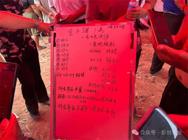 為了讓眾人直觀了解金子彈1號的產(chǎn)量情況,大會現(xiàn)場進(jìn)行了實地測產(chǎn)。經(jīng)嚴(yán)格測算,金子彈1號折合14%標(biāo)準(zhǔn)水分畝產(chǎn)量達(dá)到1856.4 斤。在這樣的大災(zāi)之年,金子彈1號用實實在在的高產(chǎn)數(shù)據(jù)彰顯了其品種的高產(chǎn)特性。到場參會人員親眼目睹這一驚人產(chǎn)量后,驚嘆不已,紛紛合影留念,并通過抖音等平臺進(jìn)行宣傳,力求讓更多人知曉金子彈1號的優(yōu)異表現(xiàn)。