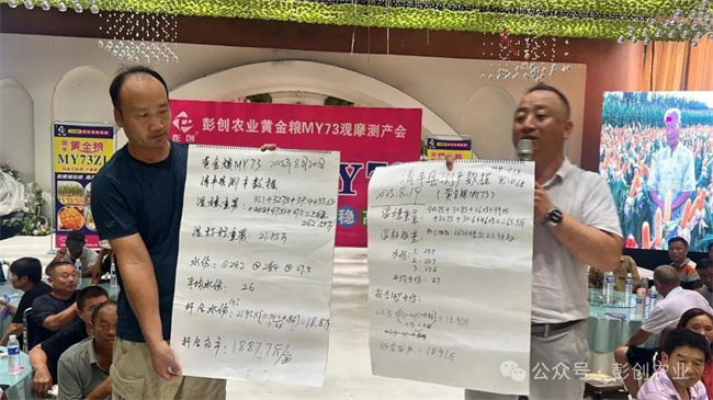 除了田間觀摩和現(xiàn)場(chǎng)測(cè)產(chǎn),會(huì)議還設(shè)置了室內(nèi)分享環(huán)節(jié)。彭創(chuàng)農(nóng)業(yè)豫北河北大區(qū)經(jīng)理潘慶濤圍繞黃金糧MY73的高產(chǎn)種植配套方案及種植密度展開(kāi)詳細(xì)講解,結(jié)合清豐縣的土壤條件、氣候特點(diǎn),針對(duì)性地提出了科學(xué)的種植建議,強(qiáng)調(diào)合理密植對(duì)實(shí)現(xiàn)更高產(chǎn)量的重要性。黃金糧MY73清豐縣代理商曹廣剛曹總現(xiàn)場(chǎng)解答了農(nóng)戶在種植過(guò)程中遇到的各種問(wèn)題,為大家提供了專業(yè)的技術(shù)支持,助力農(nóng)戶實(shí)現(xiàn)高產(chǎn)增收。