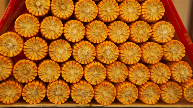 ▲中玉303橫截面展示:軸細粒深 出籽率可達91.3%