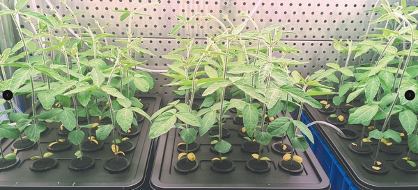 東北農(nóng)業(yè)大學(xué)作物信息實(shí)驗(yàn)室里的大豆苗。記者 周靜 攝