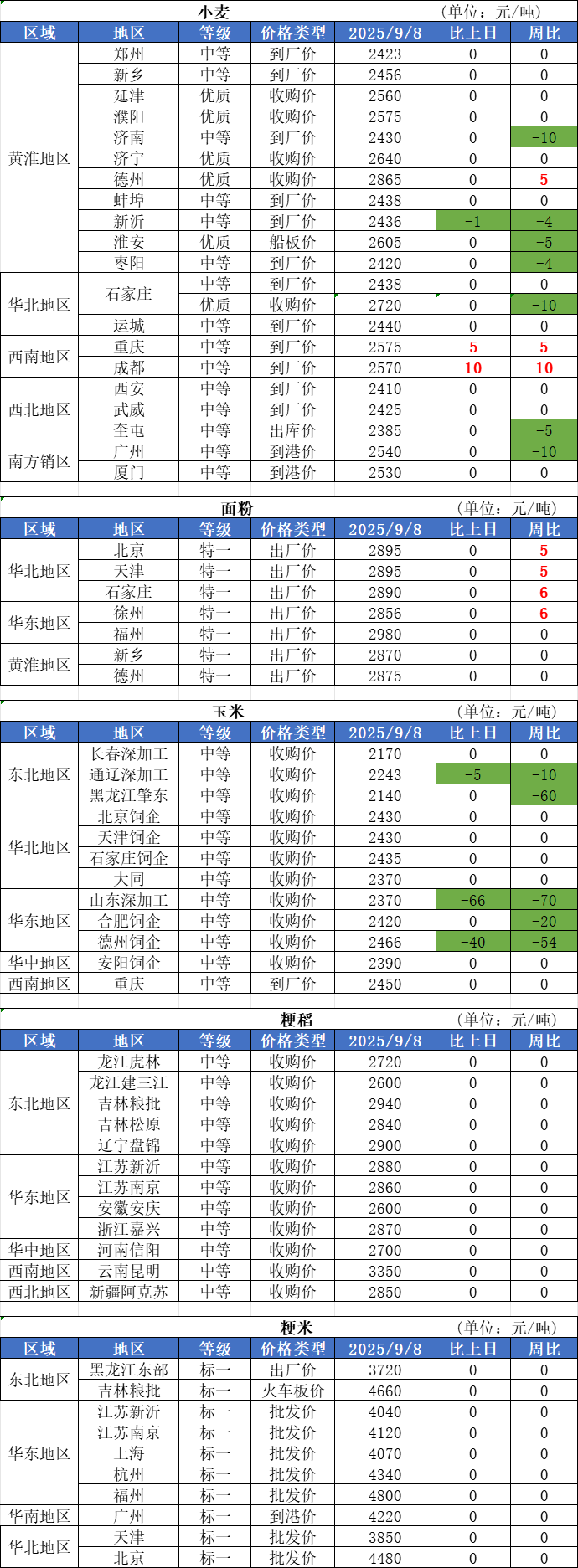 1、9月8日,小麥加工企業(yè)收購價格小范圍下跌,落價區(qū)域集中在山東、河北、安徽、陜西等地,幅度在5厘以內(nèi)。截至目前,托市收購庫點已經(jīng)累計超過520家,市場預(yù)估9月底全國小麥托市收購量可能達1500萬噸左右。